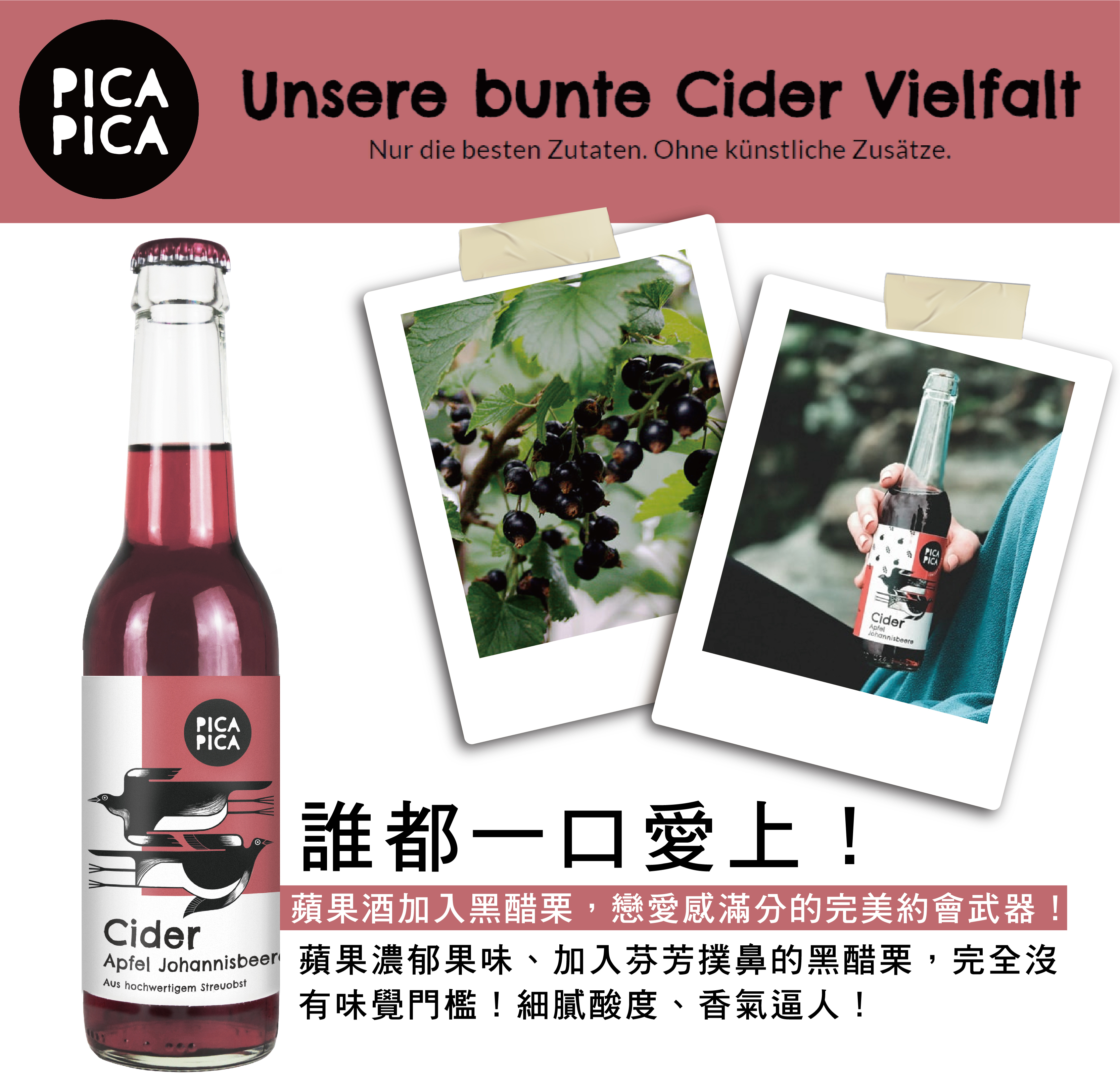▌蘋果濃郁果味、加入芬芳撲鼻的黑醋栗,完全沒有味覺門檻!細膩酸度、香氣逼人!